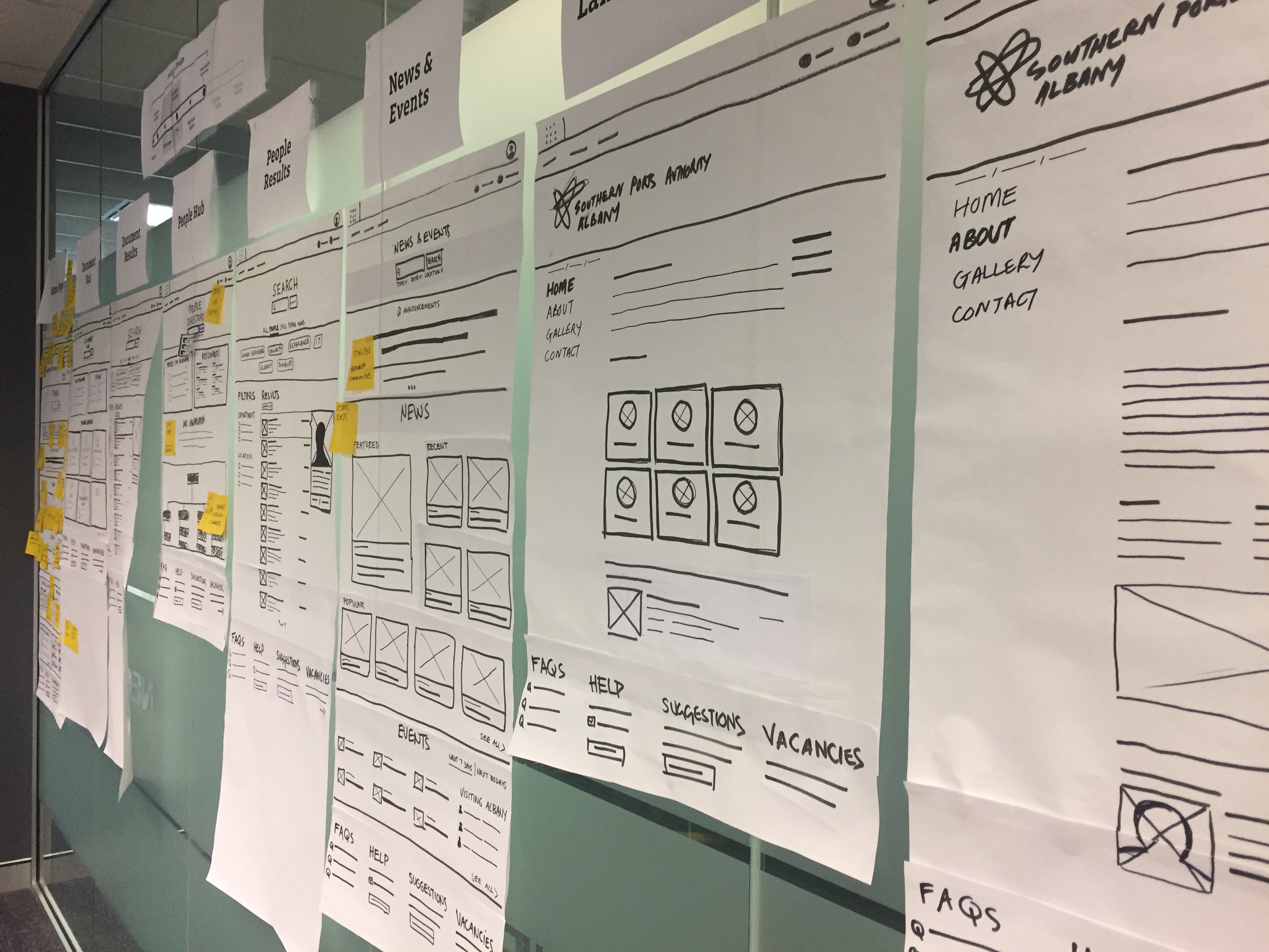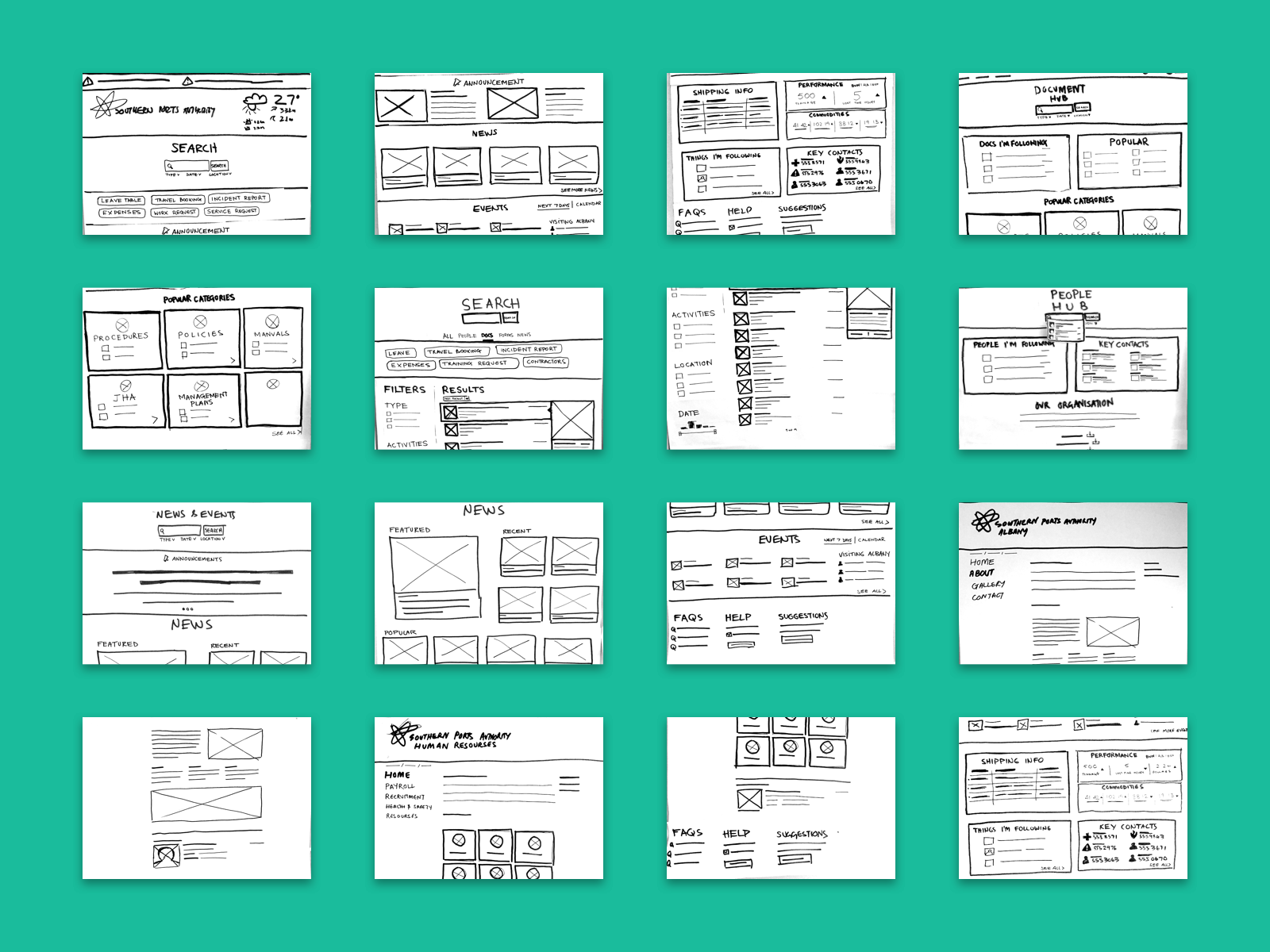 Next we brought the 8 A2 wireframes to a 2-hour Co-design Workshop with SPA, for stakeholders to further define and refine the intranet design. What resulted would inform the intranet's interface design and development.